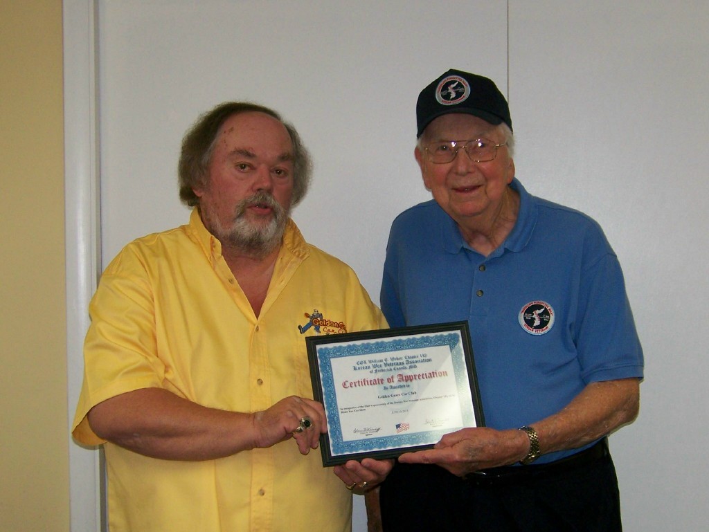 Golden Gears Car Club donated Funds from their local Home Run Car Show to Veterans Support Organizations, one of which was KWVA Chapter 142.