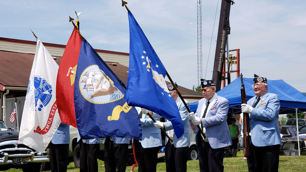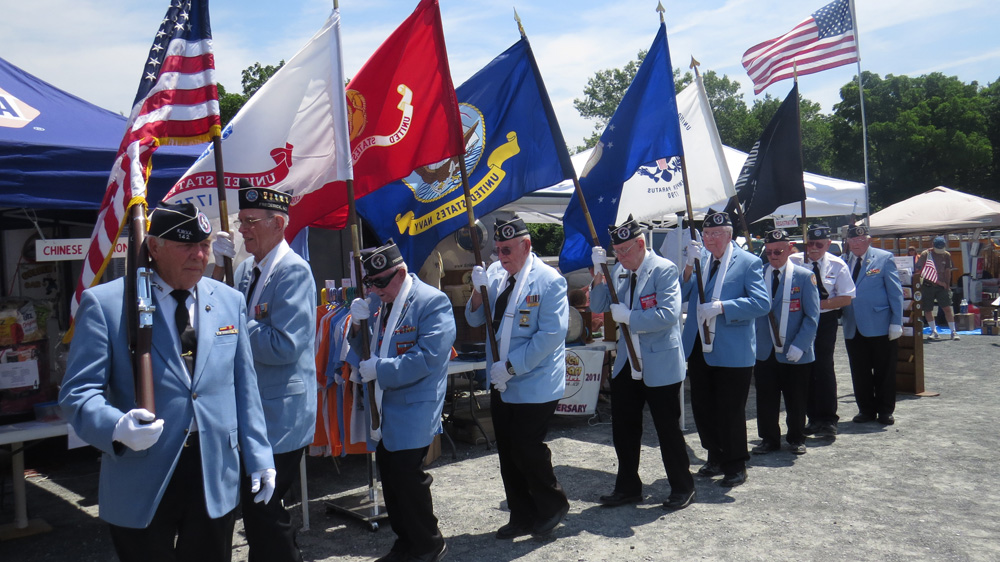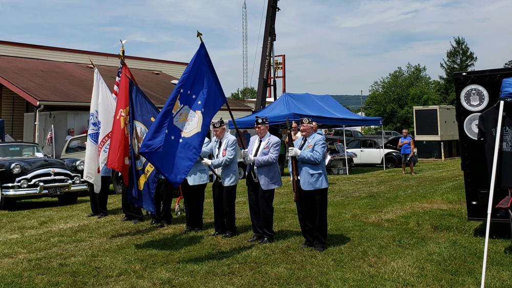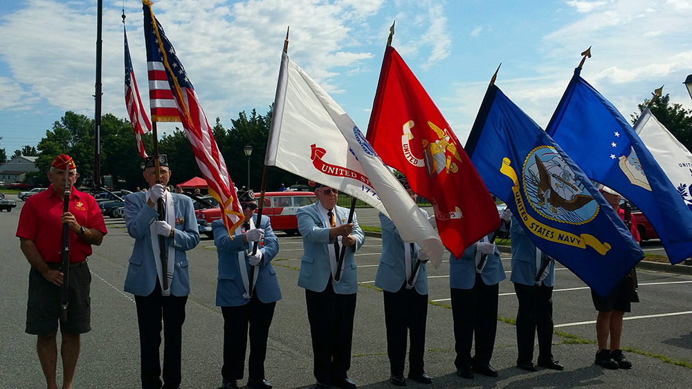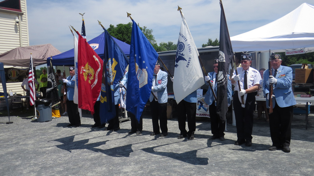 Chapter 142 presented the Colors at the Golden Gears Home Run Car Show on Sunday, June 25, 2017 on Nymeo Field at Harry Grove Stadium. The Car Show was to be held on Saturday but had been postponed to Sunday due to impending rain. Not all Color Guard members could make the shift from Saturday to Sunday, so two members from the Shangri-La Detachment U.S. Marine Corps 118 stood in to complete the Color Guard. A big Thank You goes out to Ron Layman and Tommy Grunwell for pitching in.