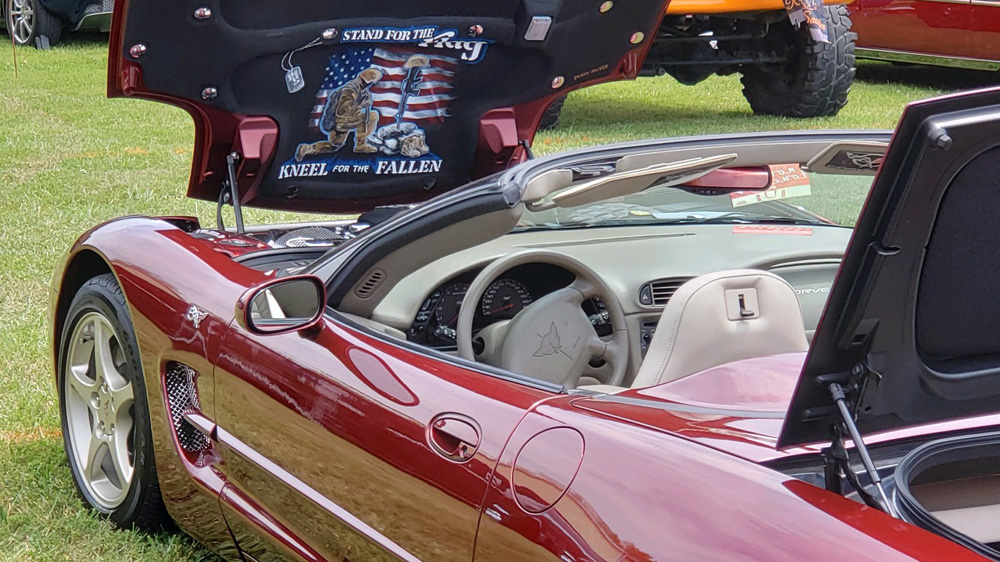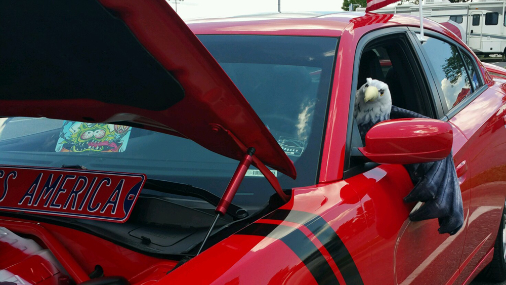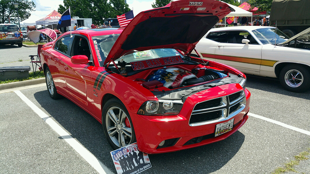 This year, Chapter 142 selected a Car Show participant to receive the Veterans Choice Award. The award went to Sandy Daniels-Palmer, whose modified red Charger with Bald Eagle engine cover and driver was a show stopper. The AWD HEMI also sports the signatures of Richard Petty and his pit crew.