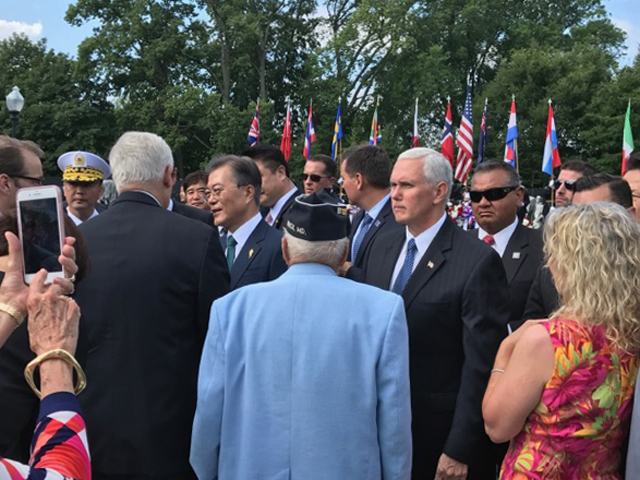 On June 30, 2017, Republic of Korea President Moon Jae-in attended the Korean War Veterans Memorial in Washington, D.C. for a Wreath Laying Ceremony. After Opening Remarks and Salutation to the National Flags, ROK President Moon Jae-in, U.S. Vice President Michael Pence and U.S. KWVA President Thomas Stevens laid wreaths in rememberance of those who gave their lives for the freedom of the Republic of Korea.