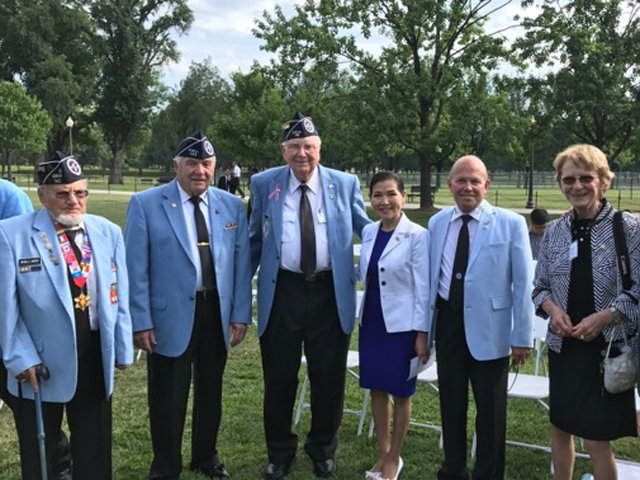 Wendell Murphy, Vice Commander Fred Becker and Secretary Glenn Wienhoff represented Chapter 142. Wendell Murphy, a purple heart recipient, was personally greeted by President Moon Jae-in as well as Vice President Pence. Also in attendance was Maryland First Lady Yumi Hogan, who is the first Korean American first lady in the United States.