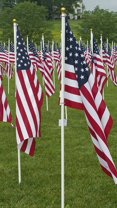 The Knights of Columbus organized a Field of Honor over Memorial Day weekend on the grounds of Saint Ignatius Catholic Church. With the help of Colonial Flag Foundation and local Boy Scout Troops, the Frederick Knights of Columbus displayed over 600 flags. Each US flag is poly-cotton measuring 3 feet by 5 feet and made in the U.S.A.